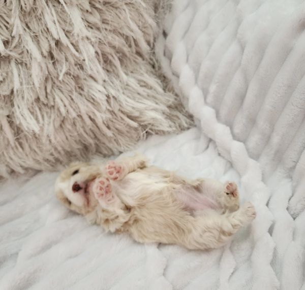 We spend lots of time on training, from potty training, crate training, and simple commands. We also make sure our puppies have plenty of activities to stimulate a confident upbringing making them extremely resilient and ready to explore without fear.